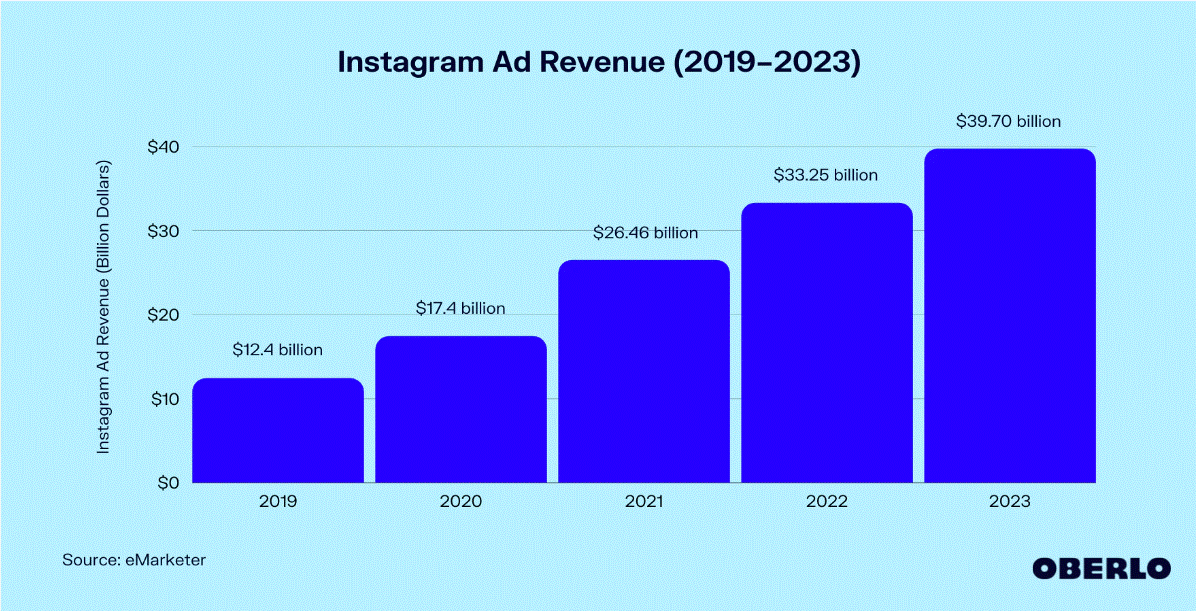 In the case of Instagram, currently in 2021, has expected revenue of USD 47.6 billion and 90% more revenue come from mobile advertising business.